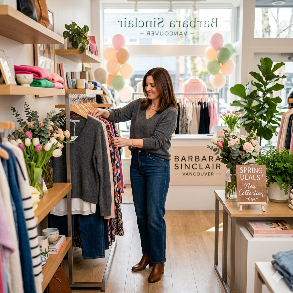 It’s spring in Vancouver, and here at Barbara, we wanted to celebrate the new season with something special for our customers. After a long winter, it’s the perfect time for fresh colors, new outfits, and a little bit of joy in your wardrobe. That’s why we’ve put together a spring sale: to thank you, to give people a chance to get to know our store, and to let everyone find something lovely for the new season.